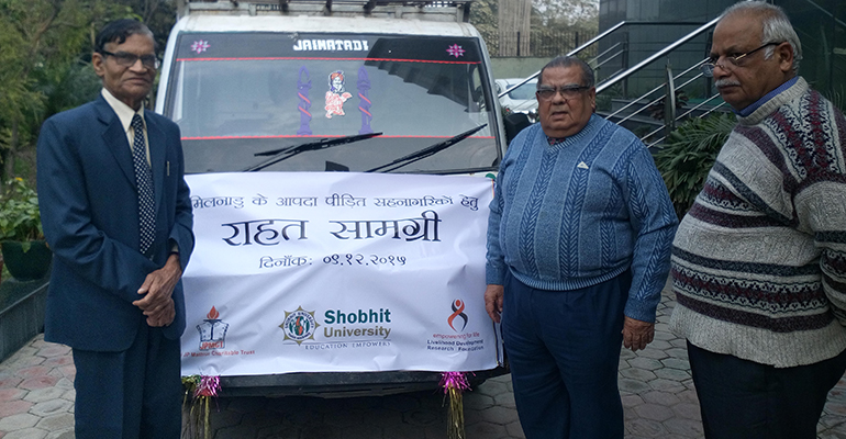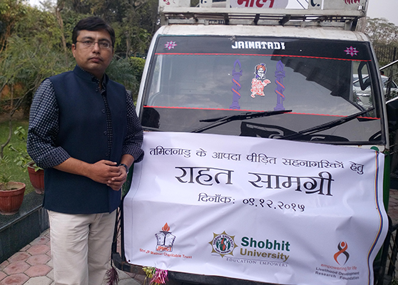Seeing the scale of the tragedy and the massive damage caused by the floods, Shri J P Mathur Charitable Trust & NICE Society carried out flood relief effort and donations. Our appeal to people to join hands and donate/volunteer was successful in mobilizing large numbers of our volunteers. More than 2000 blankets were mobilized in a very short time by the Trust to be given to the affected people in the area. We ensured that our relief material reached in a timely manner to those in need. We hope to provide more relief materials like food, medicines and tents to the people in Chennai and the surrounding areas.